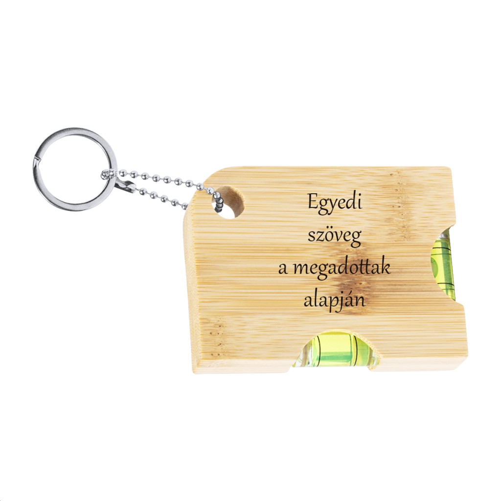 Bambusz kulcstartó üvegnyitóval és vízmértékkel – praktikus és személyes ajándék egyben