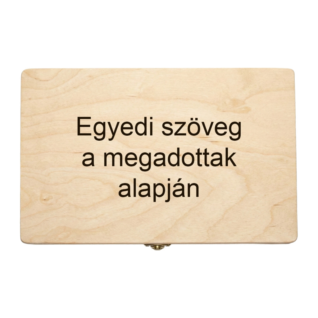A fedélre egyedileg gravírozzuk a választott nevet, idézetet, dátumot vagy bármilyen személyes szöveget, így a doboz igazán egyedi, megismételhetetlen ajándékká válik. Használható ajándékcsomagoláshoz, esküvői meglepetésdobozként, emlékek vagy fotók tárolására, keresztelőre, születésnapra, évfordulóra – de akár saját otthonodban is stílusos tárolóként szolgálhat.