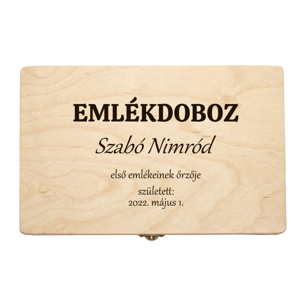 A doboz fedele egyedi szöveggel gravírozható, így teljesen személyessé teheted: kerülhet rá név, dátum, kedves üzenet, idézet, vagy akár egy “Emlékdoboz” felirat a választott stílusban. A 30×20 cm-es méret elegánsan mutat polcon vagy komódon, a tágas belső tér pedig kényelmesen elnyel kisebb-nagyobb relikviákat is. Tökéletes választás babának (első emlékek őrzésére), keresztelőre, születésnapra, ballagásra, évfordulóra – vagy egyszerűen egy olyan ajándéknak, ami nem csak szép, hanem jelentése is van.