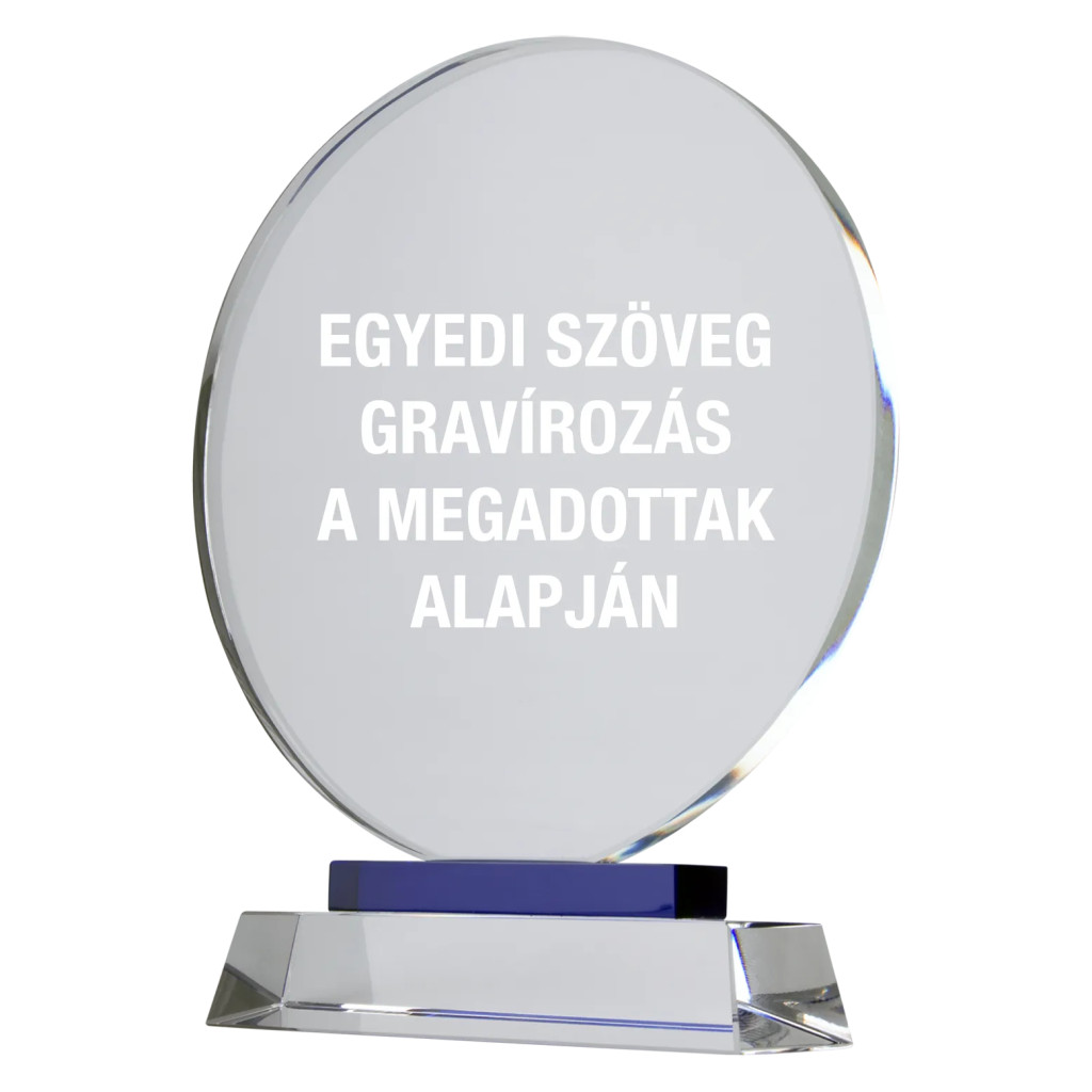 Lepje meg kollégáit, partnereit vagy szeretteit ezzel az elegáns, kerek kristályüveg plakettel, mely tökéletes választás elismerés, díjazás vagy emlékeztető ajándék céljára. A letisztult formavilágú, 160×165×10 mm-es plakett stabil talpazattal rendelkezik, súlya 1200 g, így impozáns megjelenést biztosít. A gravírozás egyedi szöveg alapján történik, így teljes mértékben személyre szabható.