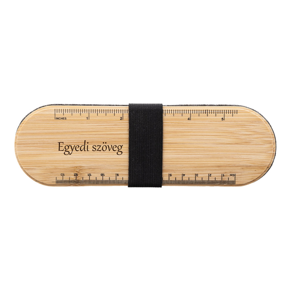 Tegye különlegessé a mindennapi rendszerezést ezzel a modern, egyedi szöveggel gravírozható tolltartóval, amely nemcsak praktikus tároló, hanem stílusos és személyes ajándék is egyben. Az RPET filcből készült tolltartó környezettudatos választás, míg a bambusz fedél természetes és elegáns megjelenést ad a terméknek. A fedélre egyedi szöveg, név, monogram vagy rövid üzenet gravírozható, így igazán személyre szabott meglepetés készülhet belőle diákoknak, irodai dolgozóknak, tanároknak vagy akár céges ajándékként is.
